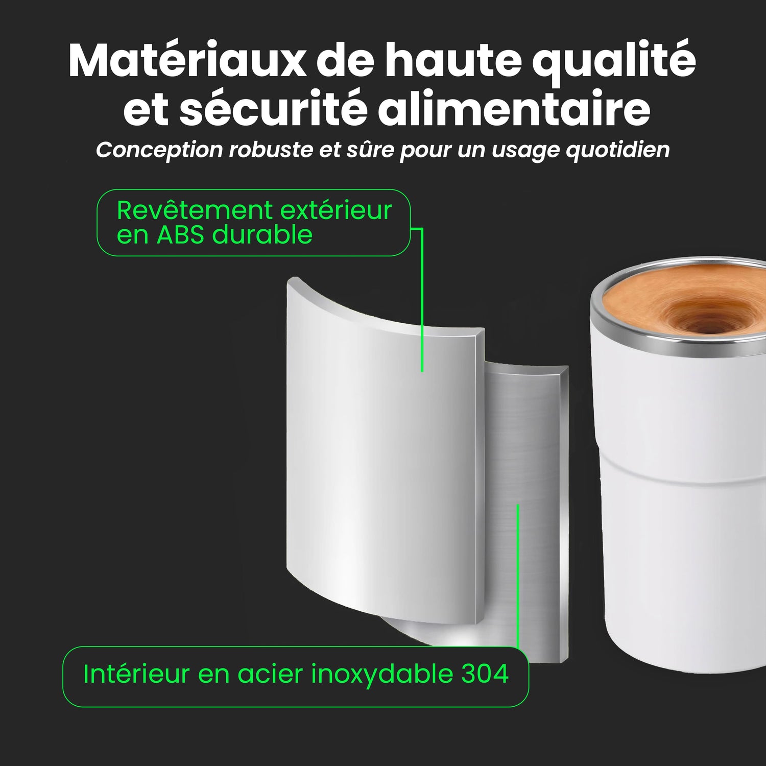 Fabriquée en acier inoxydable 304 et PP alimentaire, notre tasse assure un mélange parfait, en toute sécurité, pour longtemps.